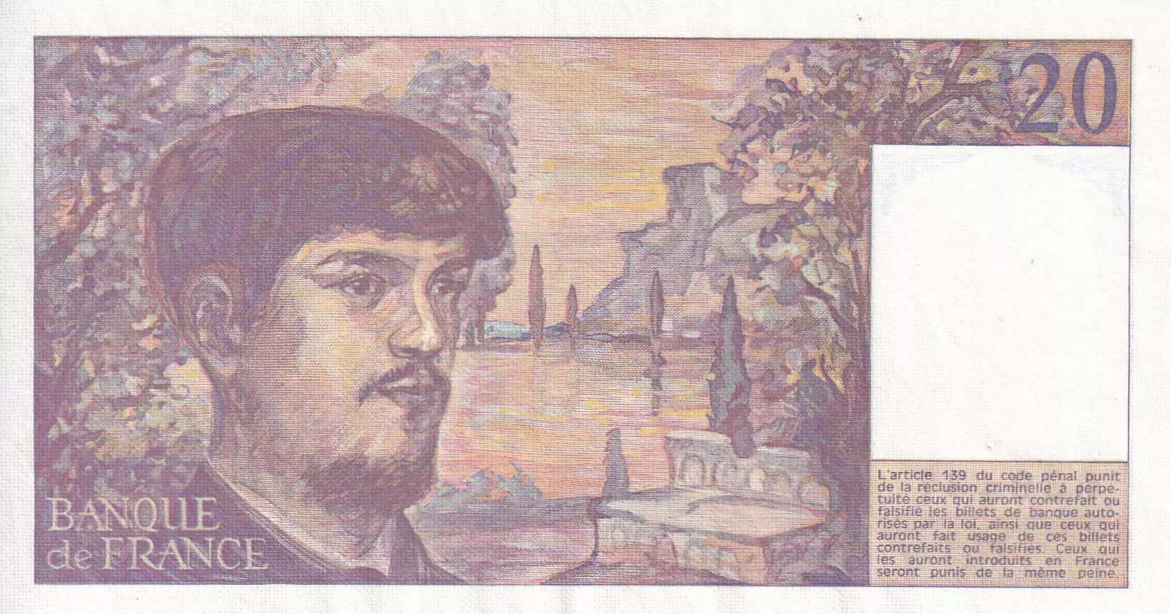 Banknote France 20 Francs - Debussy - 1986 - Serial P.016 - P.151
