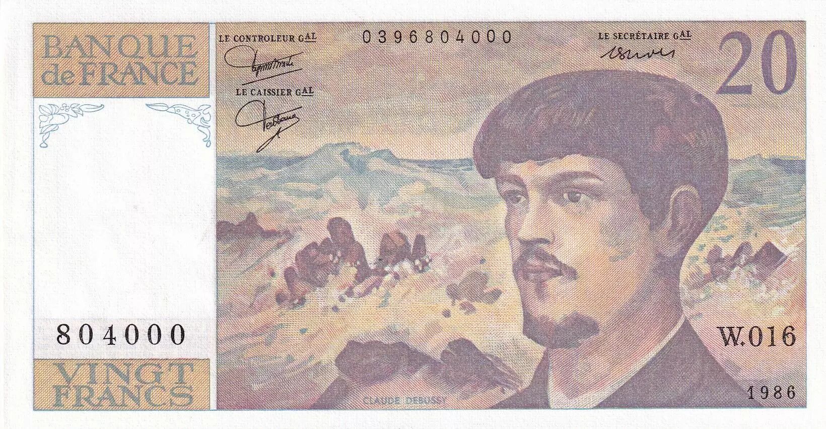 Banknote France 20 Francs - Debussy - 1986 - Serial W.016 - P.151