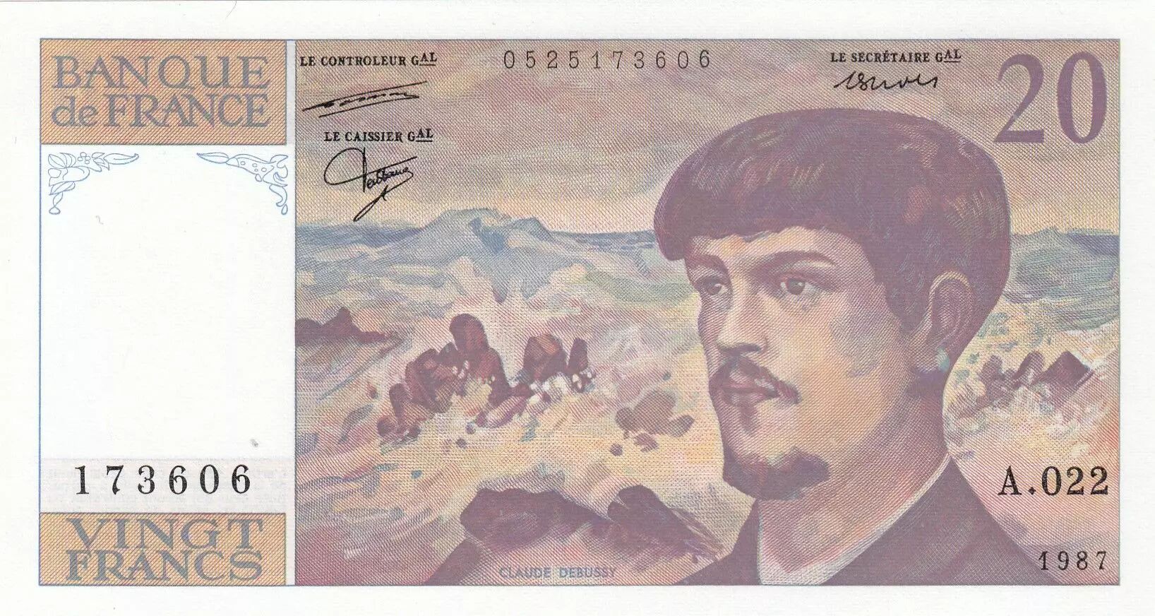 Banknote France 20 Francs - Debussy - 1987 - Serial A.022