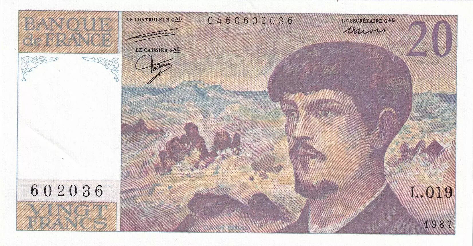 Banknote France 20 Francs - Debussy - 1987 - Serial L.019