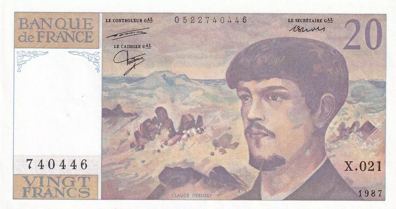 Banknote France 20 Francs Debussy - 1987 - Serial X.021