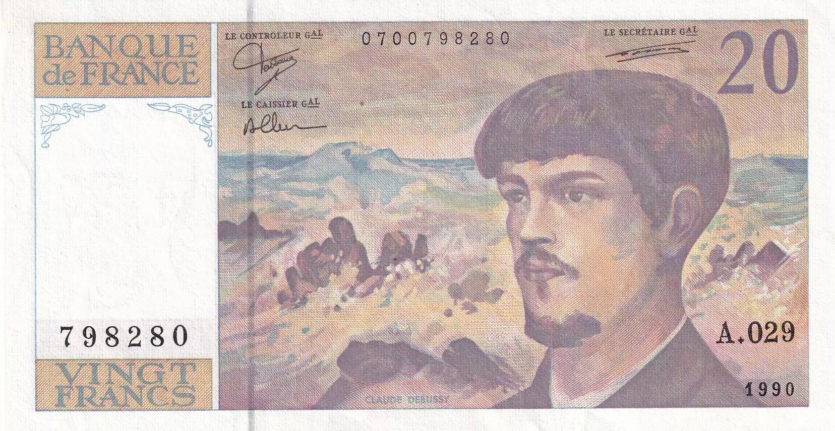 Banknote France 20 Francs - Debussy - 1990 - Serial A.029 - P.151