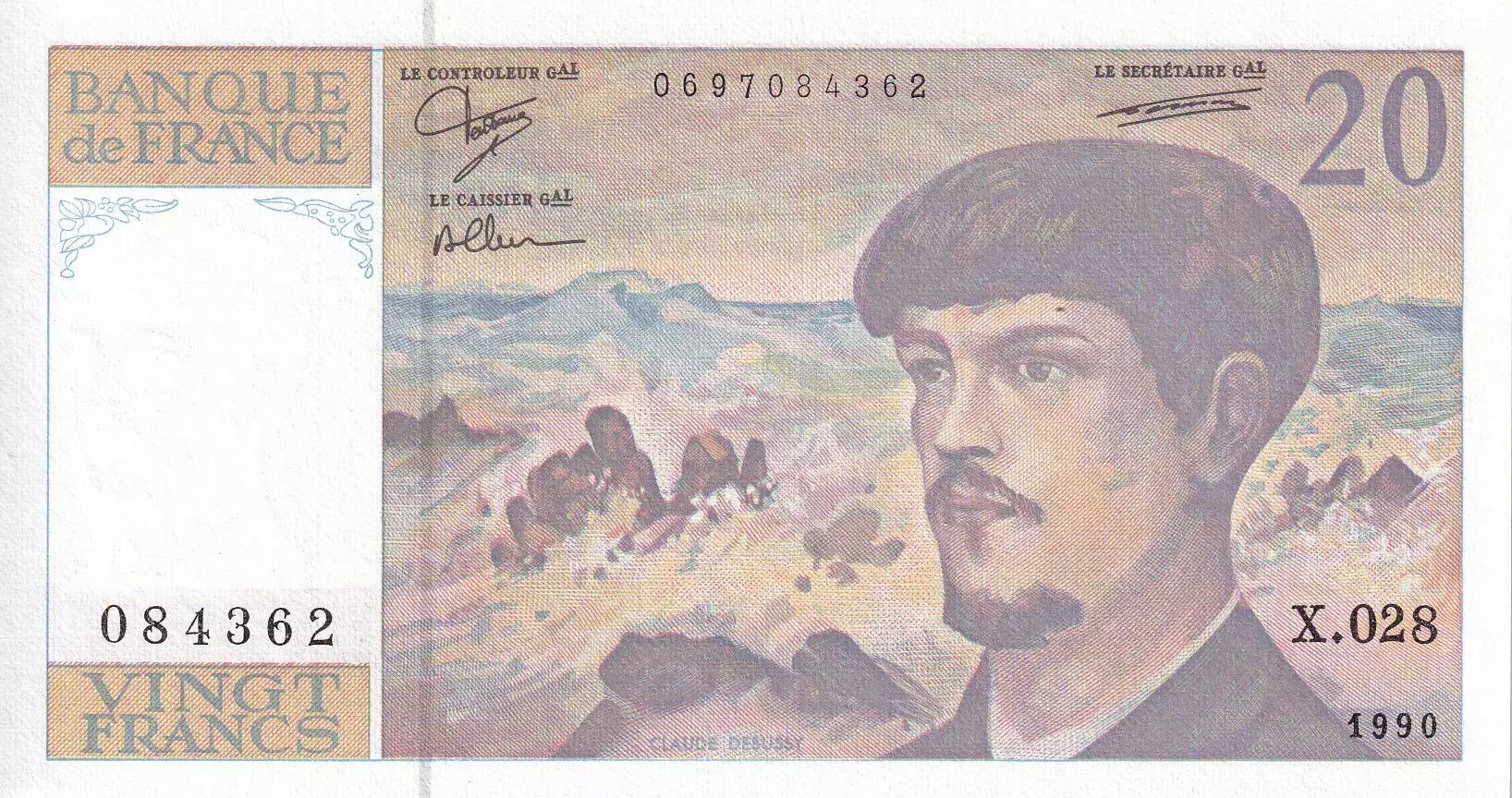 Banknote France 20 Francs - Debussy - 1990 - Serial X.028 - P.151