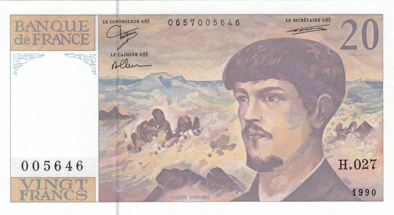 Accueil > Archivage > archivage-Billets Français > France 20 Francs - Debussy - 1990 - Série H.027