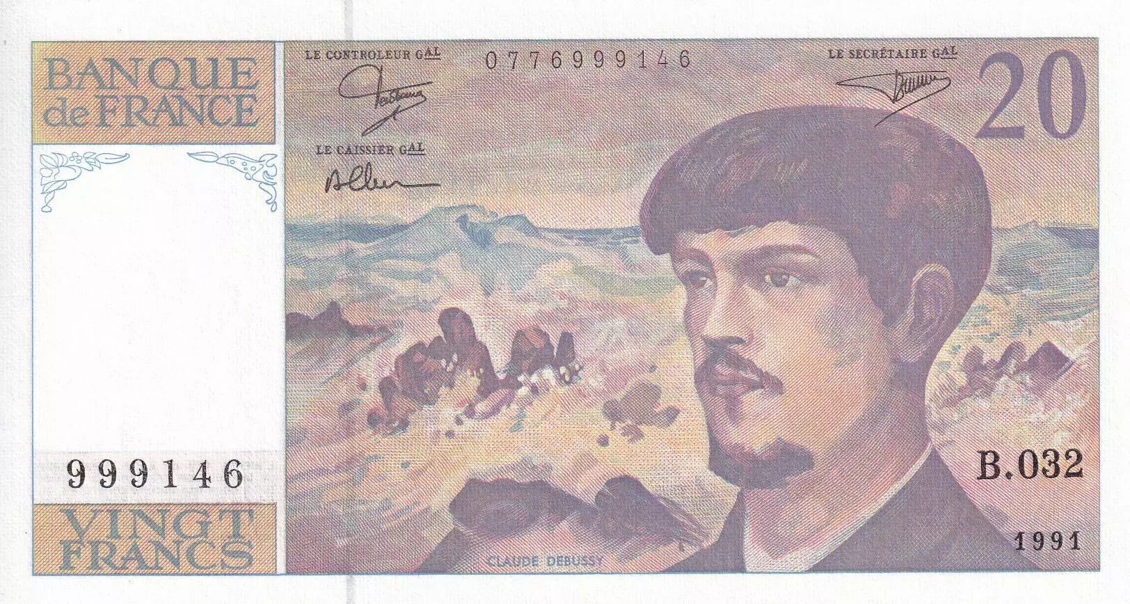 Banknote France 20 Francs - Debussy - 1991 - Serial B.032 - P.151