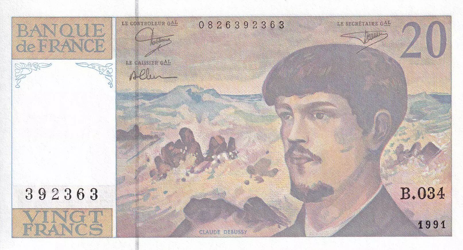 Banknote France 20 Francs - Debussy - 1991 - Serial B.034 - P.151