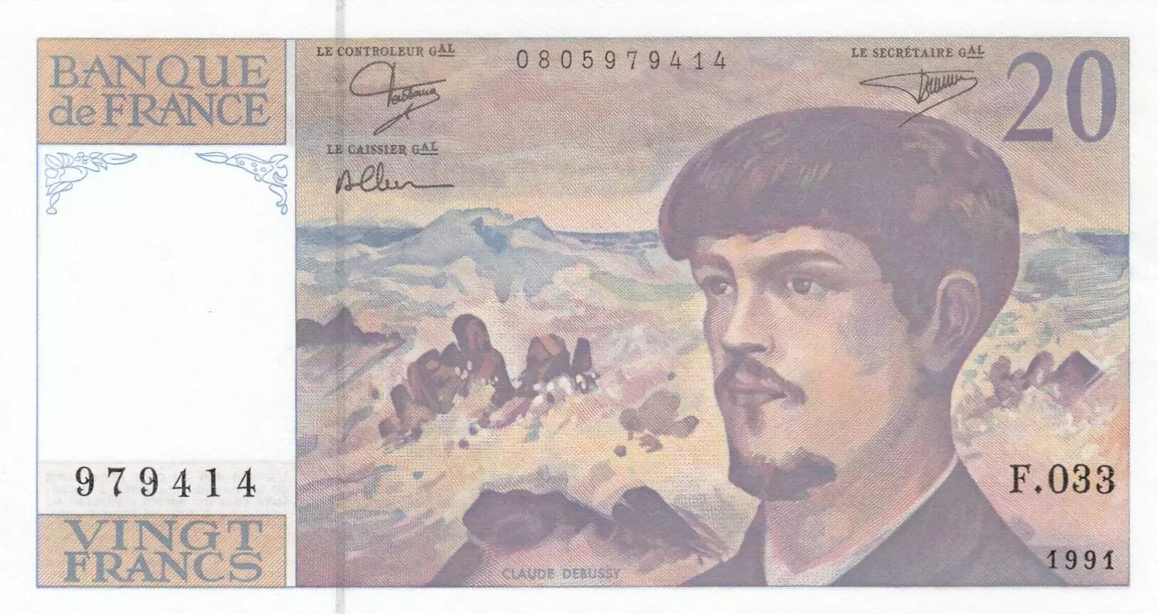 Accueil > Archivage > archivage-Billets Français > France 20 Francs - Debussy - 1991 - Série F.033