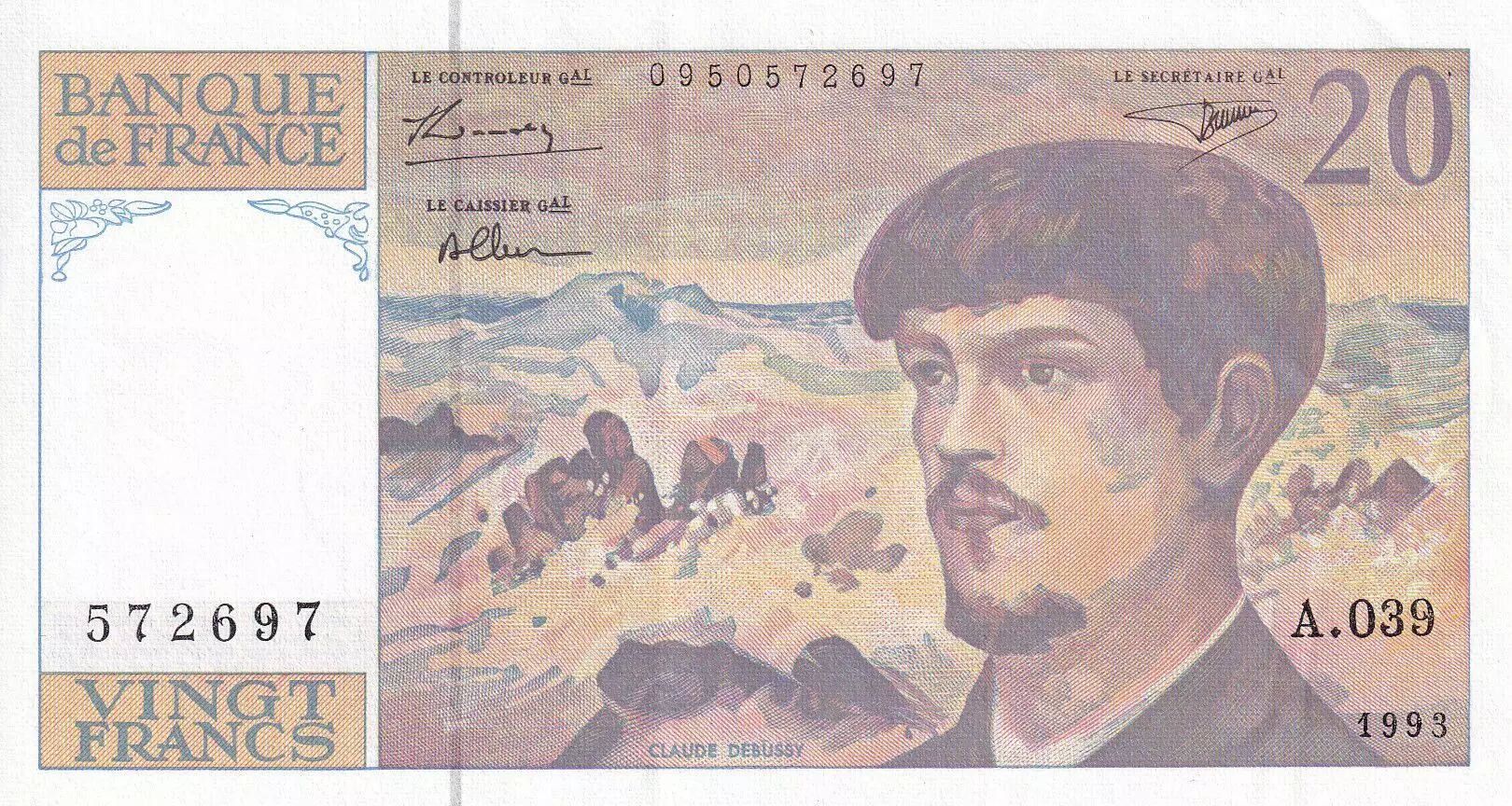 Banknote France 20 Francs - Debussy - 1993 - Serial A.039 - P.151