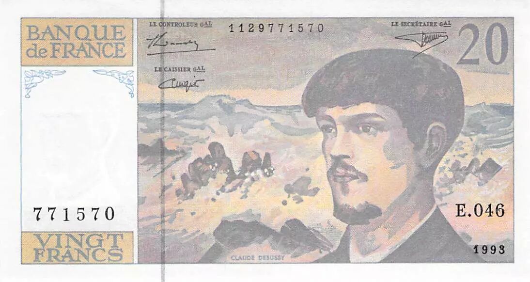 Home > > France 20 Francs Debussy - 1993 Serial E.046 - aUNC