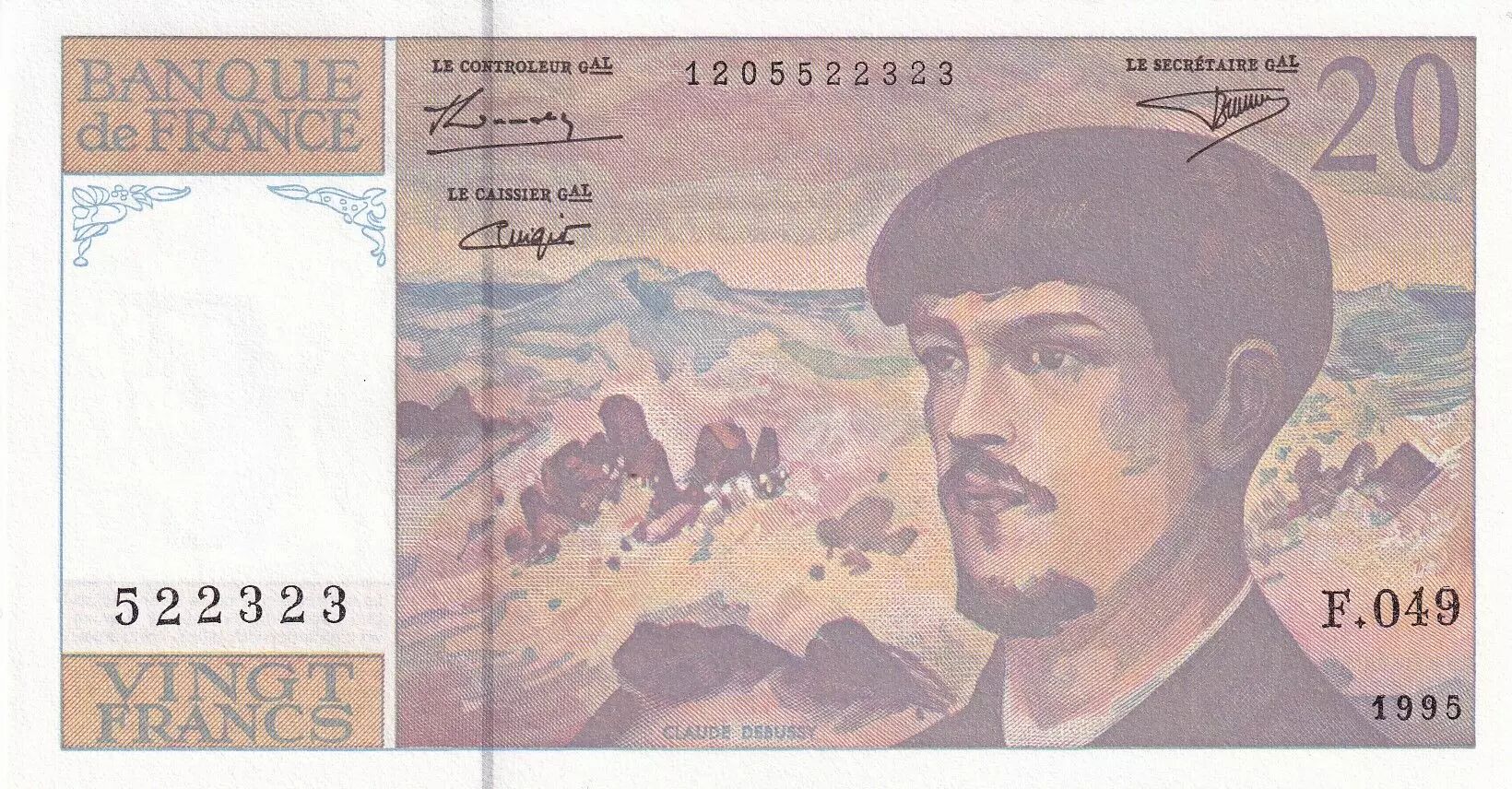 Banknote France 20 Francs - Debussy - 1995 - Serial F.049 - P.151