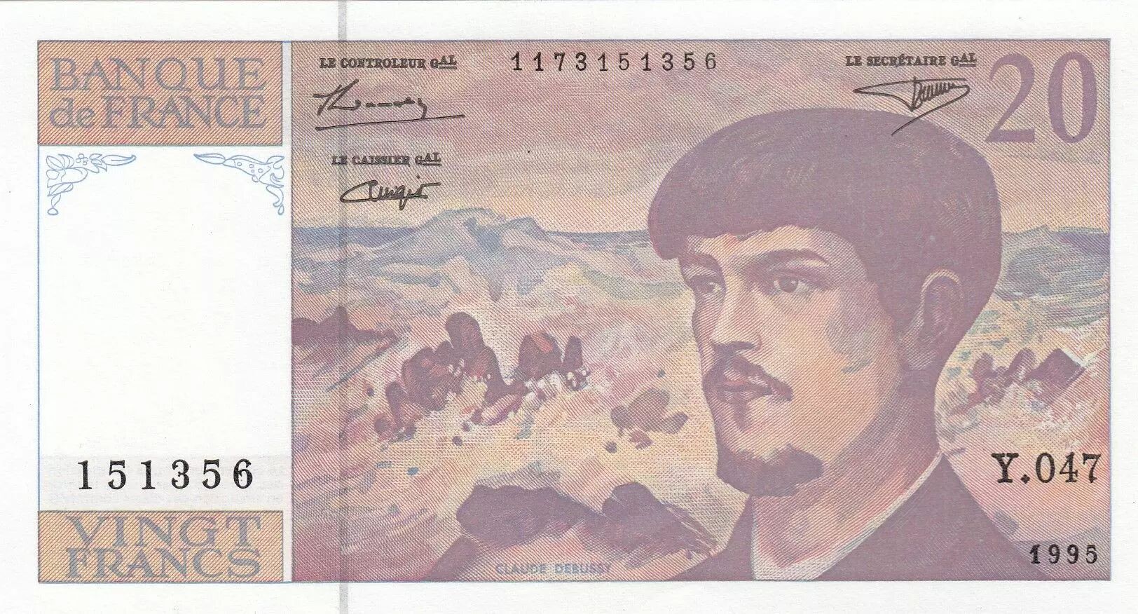 Banknote France 20 Francs - Debussy - 1995 - Serial Y.047