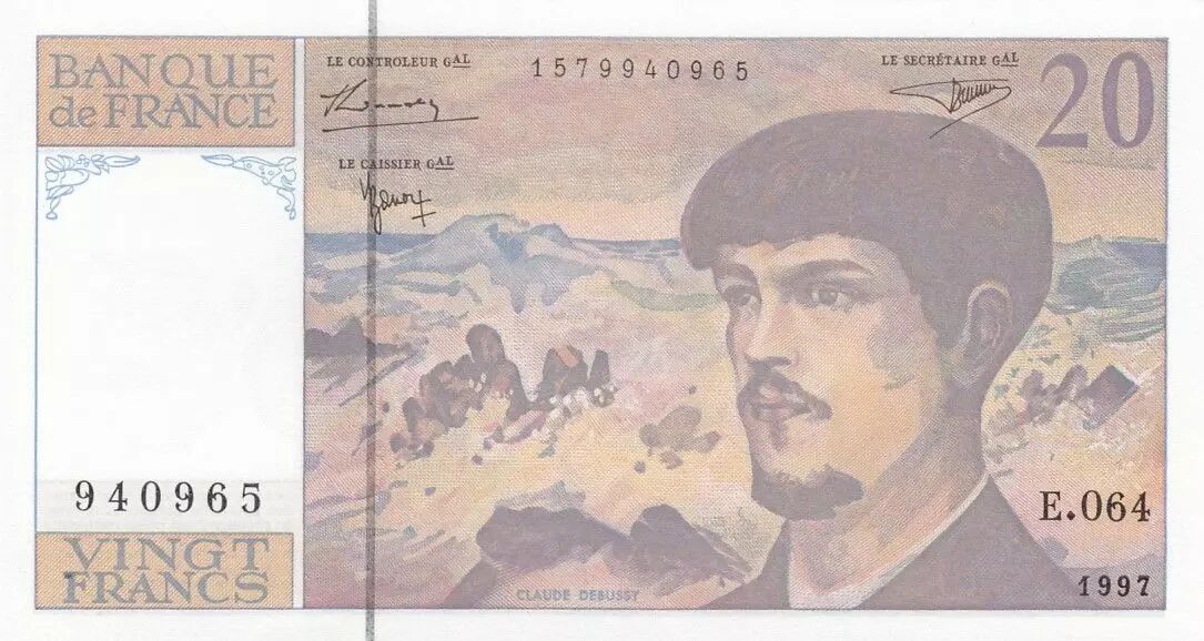 Home > French Banknotes > Bank of France Banknotes > 20 Francs Banknotes > France 20 Francs Debussy - 1997 - Serial E.064