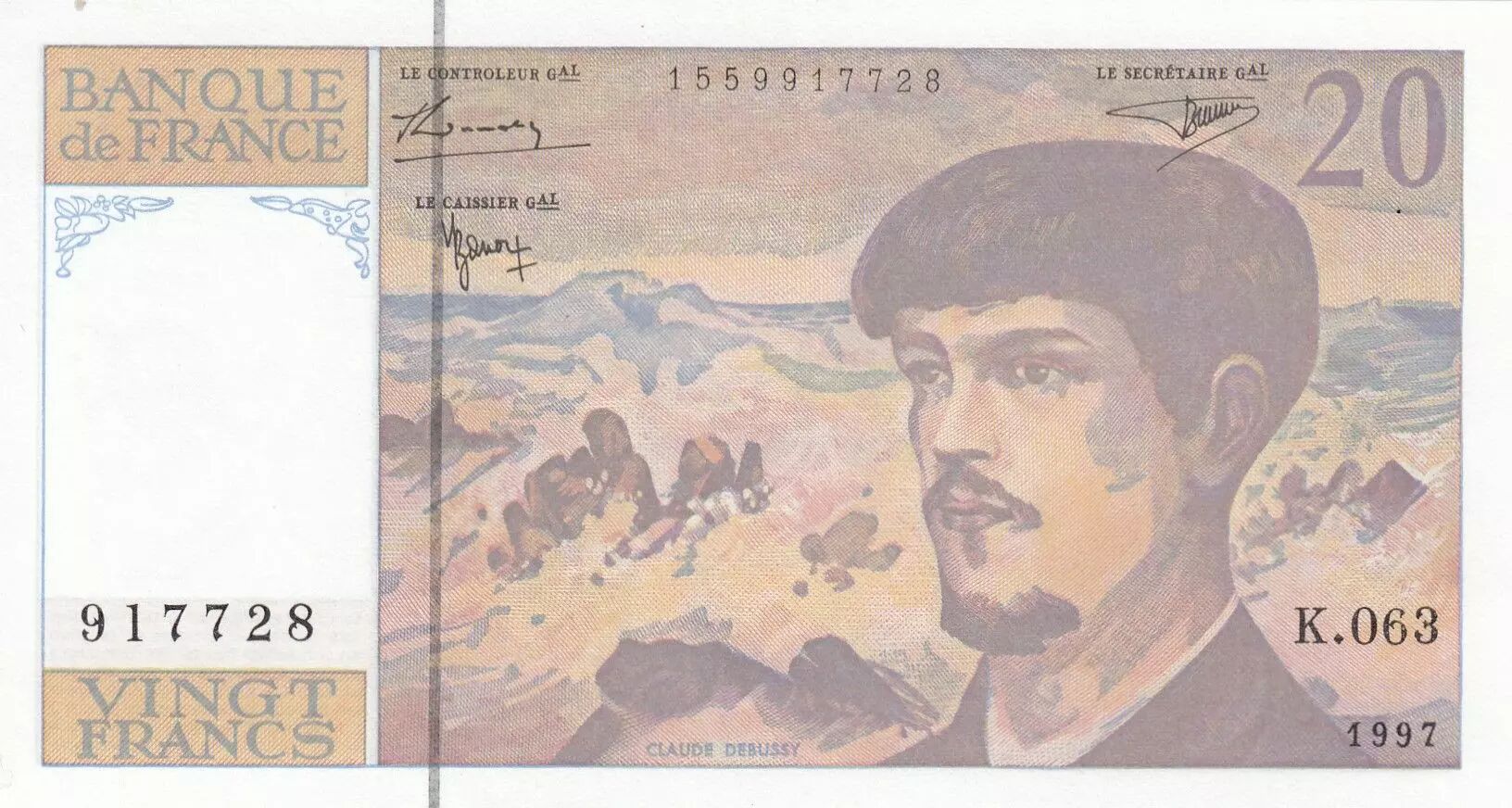 Banknote France 20 Francs - Debussy - 1997 - Serial K.063