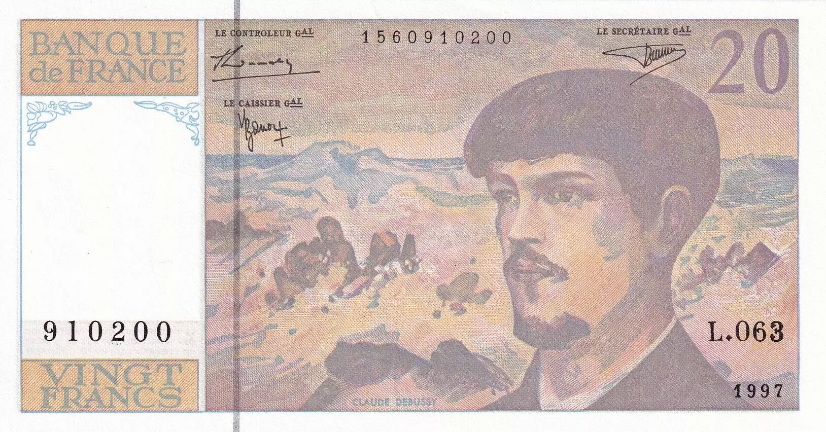 Banknote France 20 Francs - Debussy - 1997 - Serial L.063