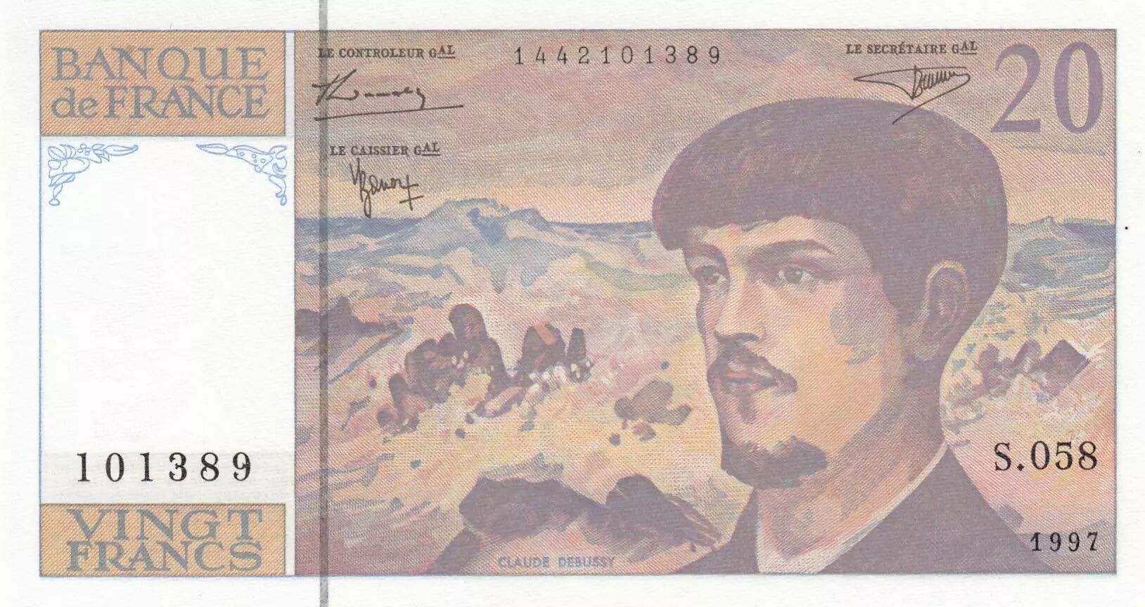 Home > French Banknotes > Bank of France Banknotes > 20 Francs Banknotes > France 20 Francs - Debussy - 1997 - Serial S.058
