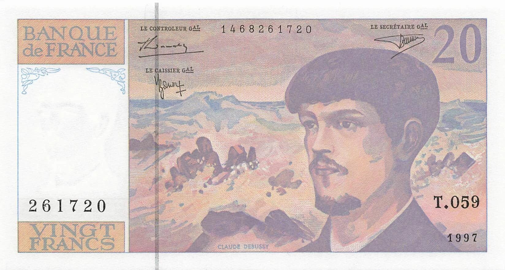 Banknote France 20 Francs - Debussy - 1997 - Serial T.059