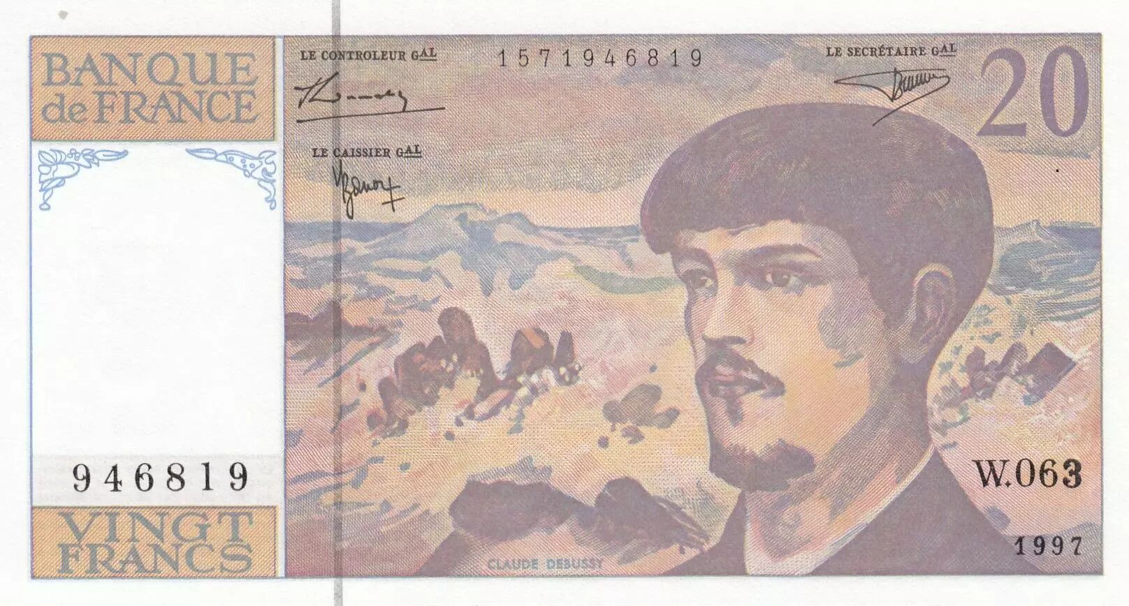 Banknote France 20 Francs - Debussy - 1997 - Serial W.063