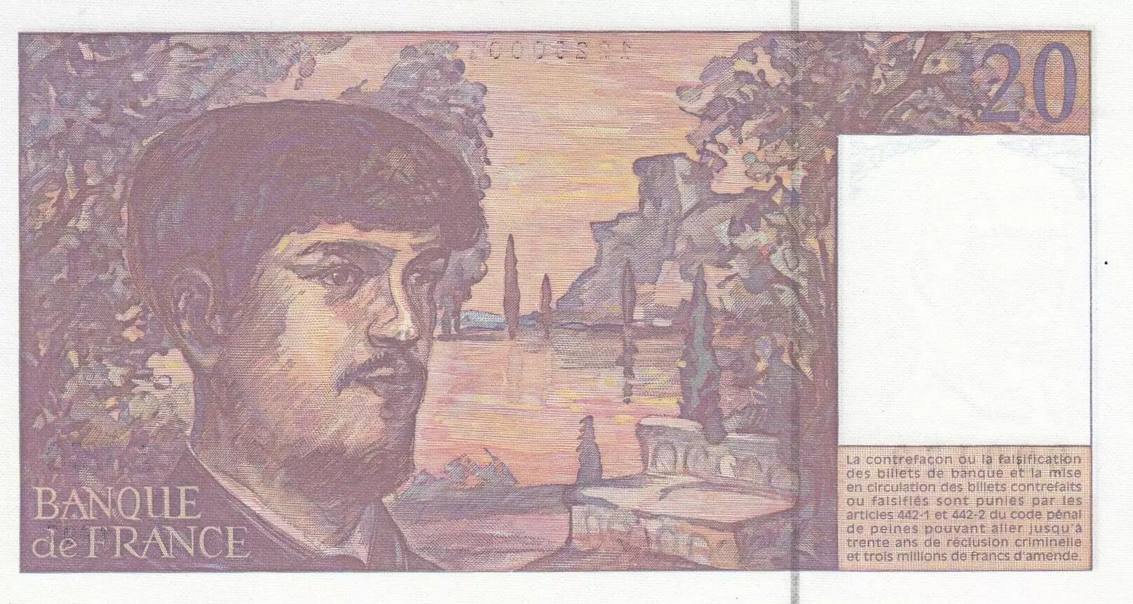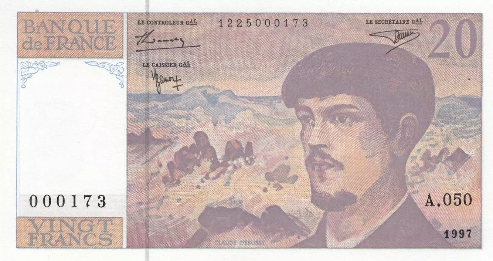 Accueil > Billets Français > Billets Banque de France > Billets 20 Francs > France 20 Francs - Debussy - 1997 - Série A.050 - Petit numéro