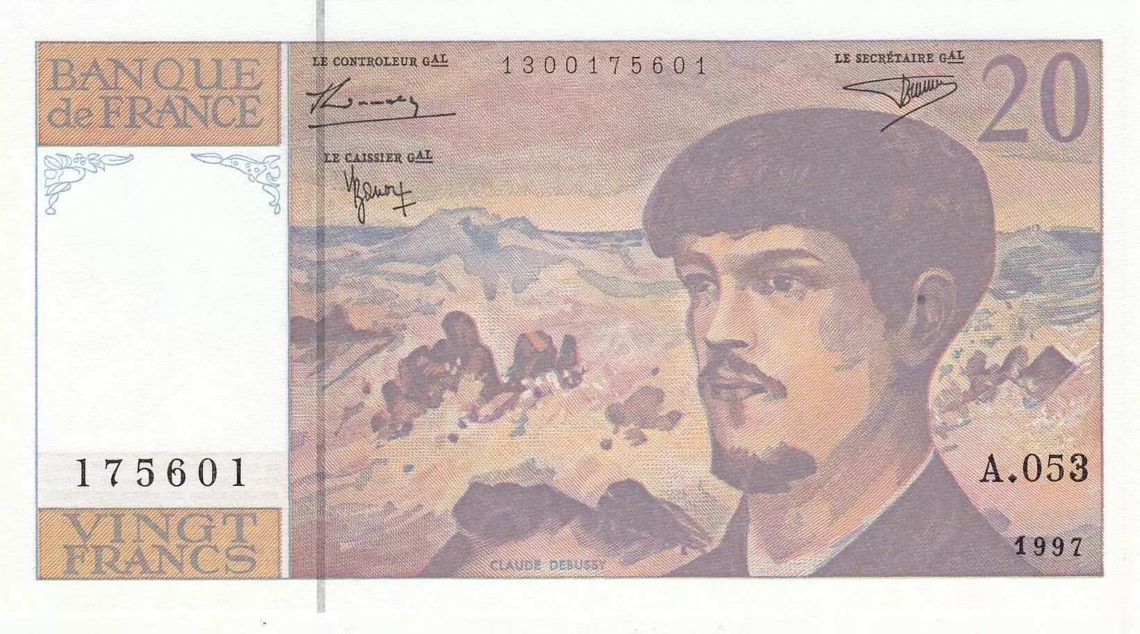 Accueil > Billets Français > Billets Banque de France > Billets 20 Francs > France 20 Francs - Debussy - 1997 - Série A.053