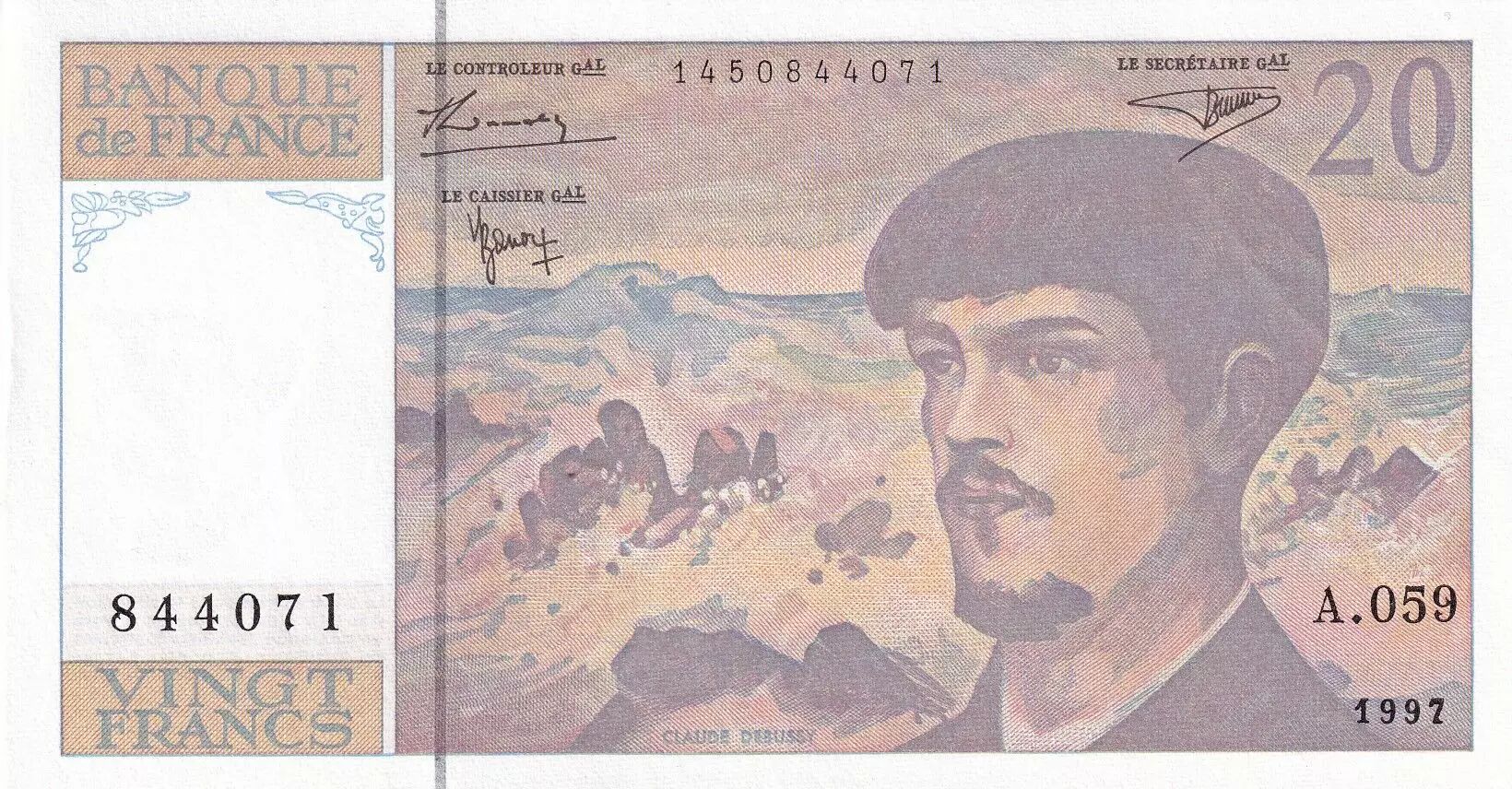 Accueil > Billets Français > Billets Banque de France > Billets 20 Francs > Debussy type 1980 (1980-1997) > France 20 Francs - Debussy - 1997 - Série A.059 - F.66TER.02A59