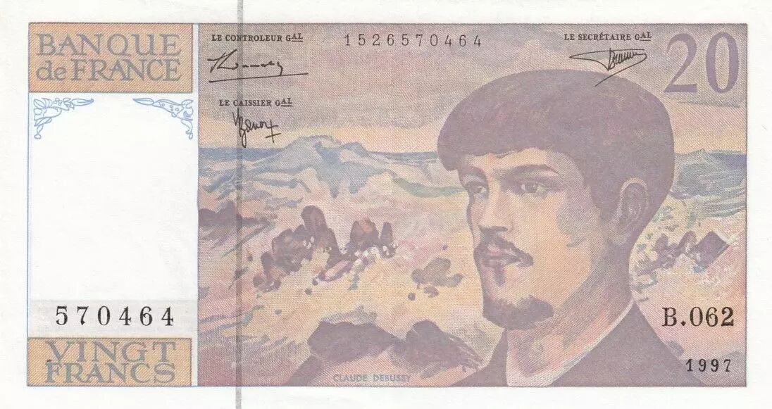 Accueil > Archivage > archivage-Billets Français > France 20 Francs Debussy - 1997 - Série B.062