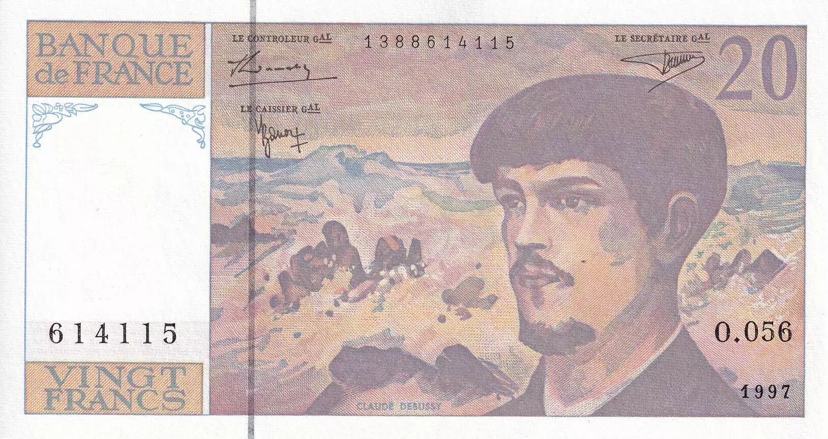 Home > French Banknotes > Bank of France Banknotes > 20 Francs Banknotes > Debussy Type 1980 (1980-1997) > France 20 Francs - Debussy - Serial O.056 - 1997 - UNC - P.151