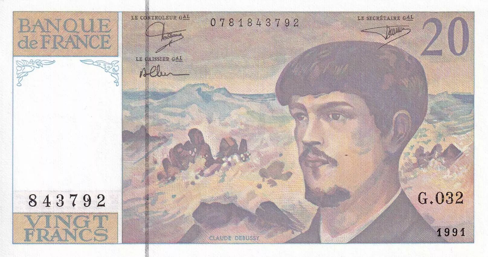 Accueil > Billets Français > Billets Banque de France > Billets 20 Francs > Debussy type 1980 (1980-1997) > France 20 Francs - Debussy - Série G.032 - 1990 - NEUF - F.66bis.01