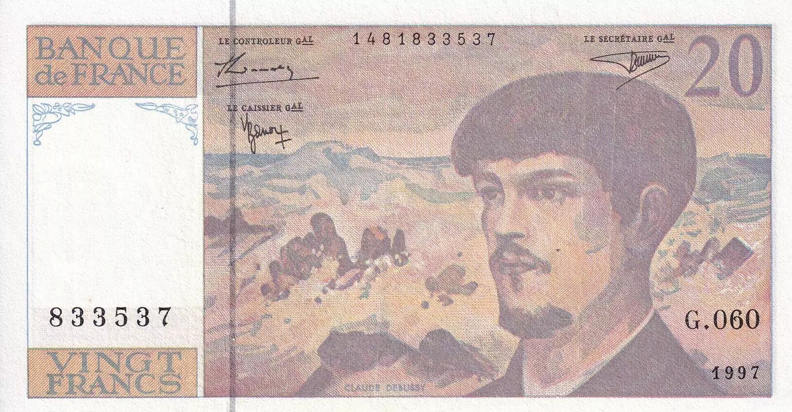 Accueil > Billets Français > Billets Banque de France > Billets 20 Francs > Debussy type 1980 (1980-1997) > France 20 Francs - Debussy - Série G.060 - 1997 - NEUF - F.66ter.02