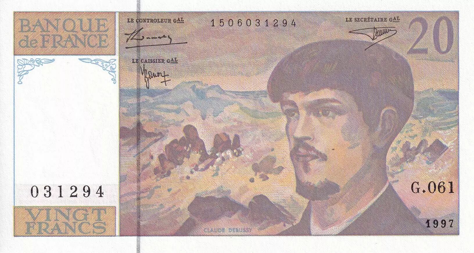 Accueil > Billets Français > Billets Banque de France > Billets 20 Francs > Debussy type 1980 (1980-1997) > France 20 Francs - Debussy - Série G.061 - 1997 - NEUF - F.66ter.02