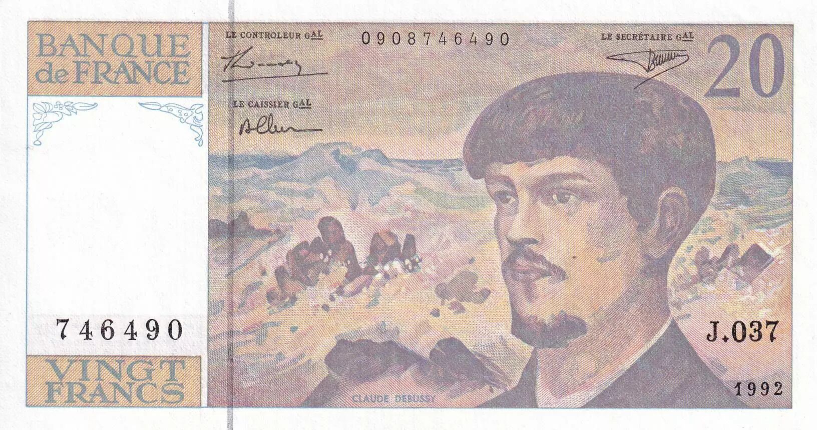 Accueil > Billets Français > Billets Banque de France > Billets 20 Francs > Debussy type 1980 (1980-1997) > France 20 Francs - Debussy - Série J.037 - 1992 - NEUF - F.66bis.03