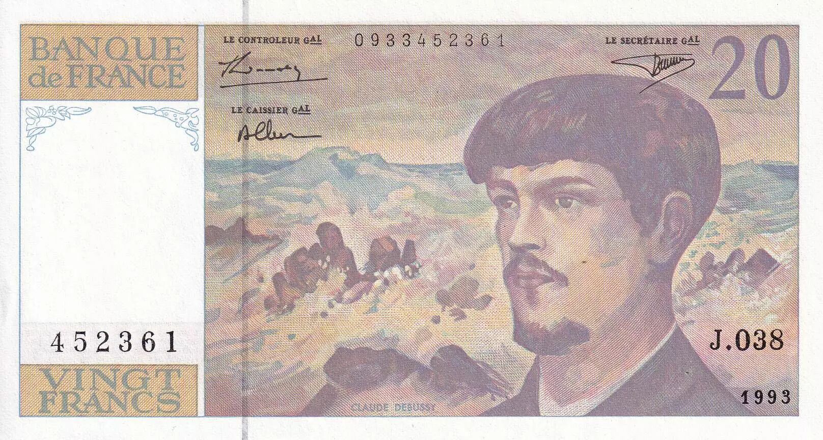 Accueil > Archivage > France 20 Francs - Debussy - Série J.038 - 1993 - NEUF - F.66bis.04