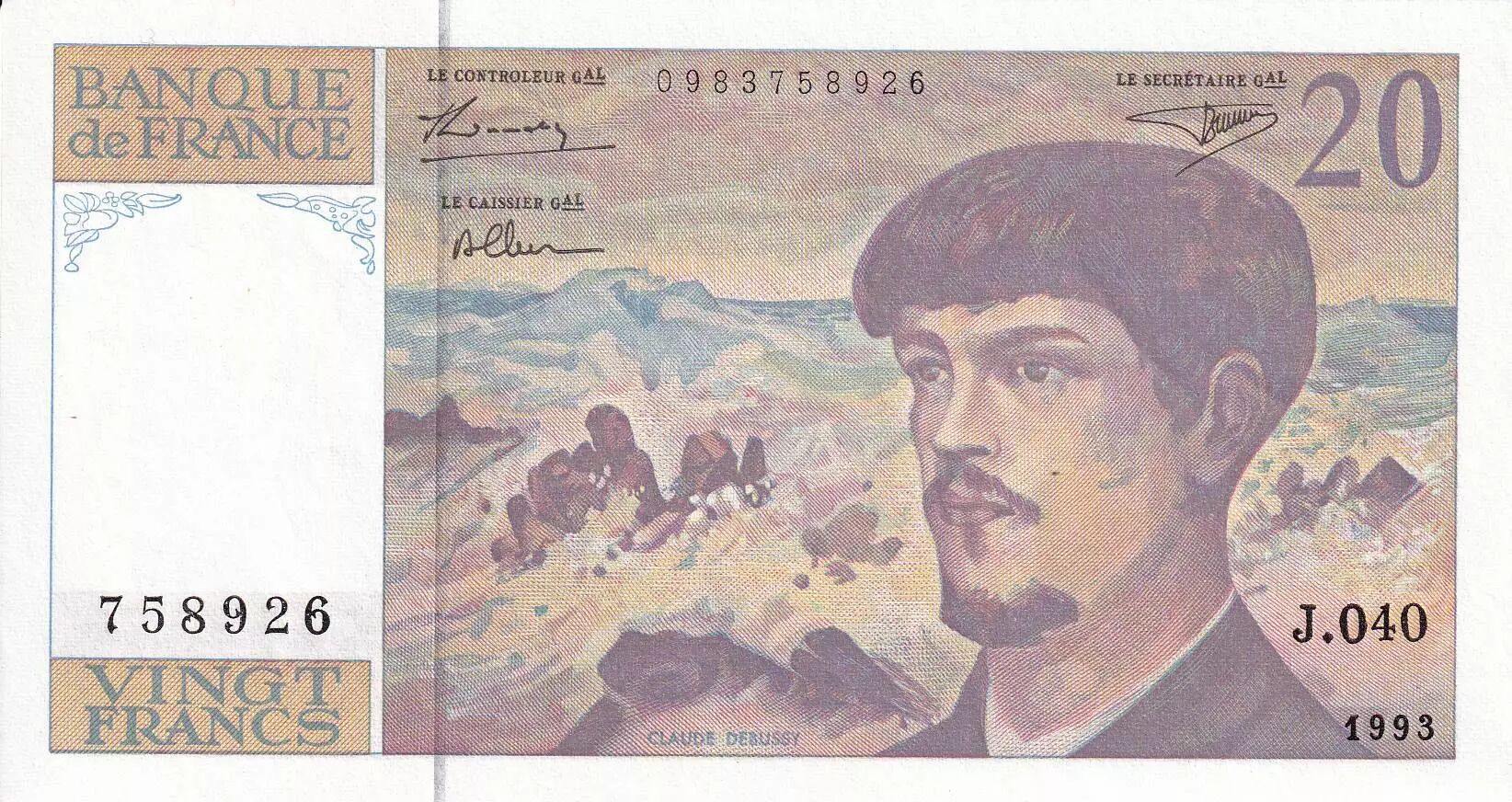 Accueil > Billets Français > Billets Banque de France > Billets 20 Francs > Debussy type 1980 (1980-1997) > France 20 Francs - Debussy - Série J.040 - 1993 - NEUF - F.66bis.04