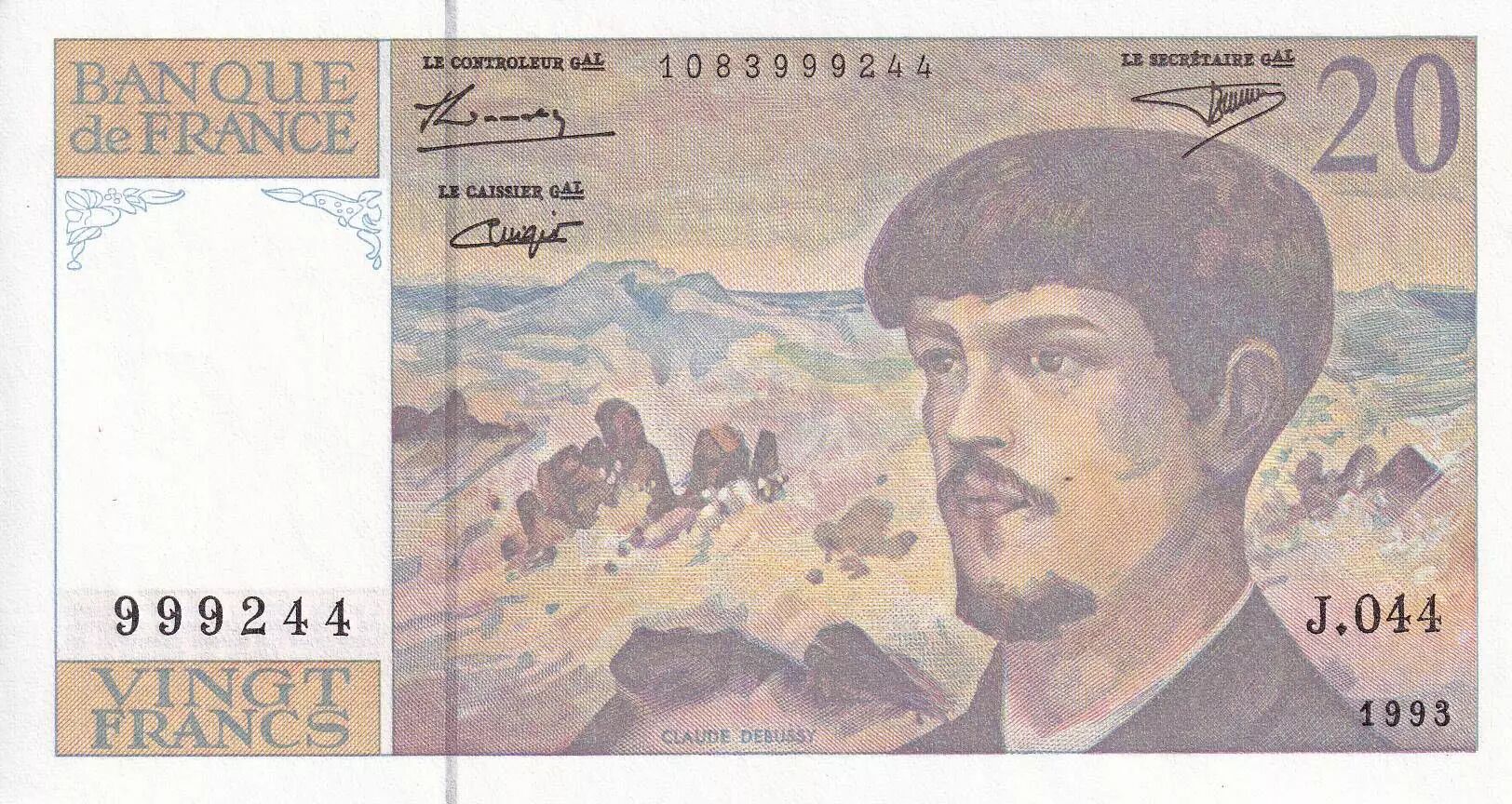 Accueil > Billets Français > Billets Banque de France > Billets 20 Francs > Debussy type 1980 (1980-1997) > France 20 Francs - Debussy - Série J.044 - 1993 - NEUF - F.66bis.05