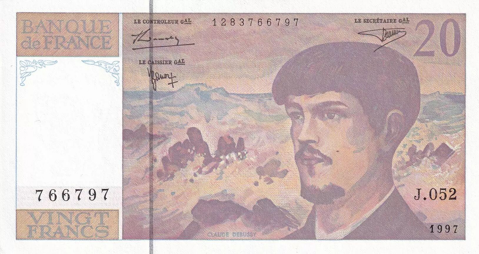 Accueil > Billets Français > Billets Banque de France > Billets 20 Francs > Debussy type 1980 (1980-1997) > France 20 Francs - Debussy - Série J.052 - 1997 - NEUF - F.66ter.02