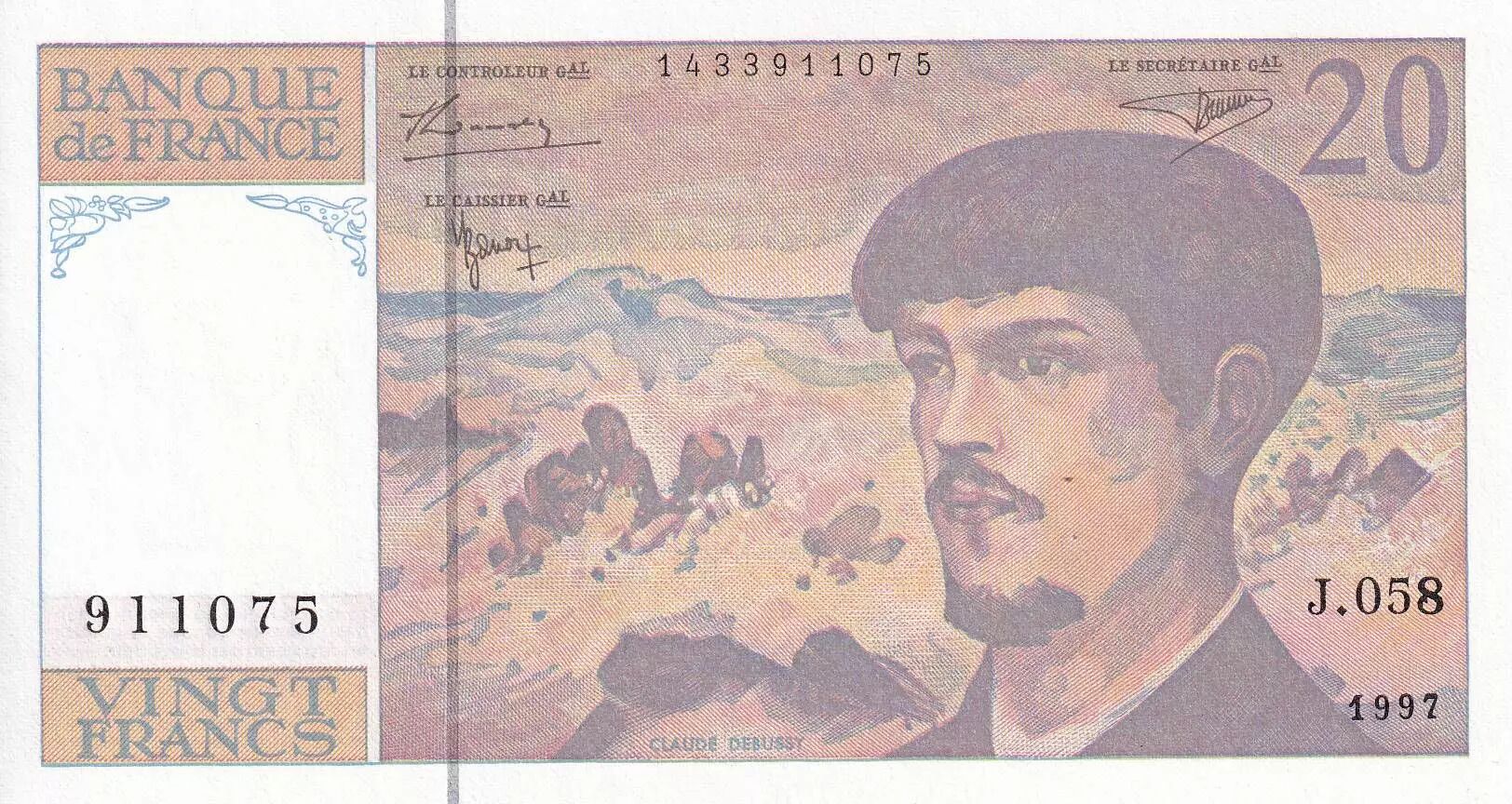 Accueil > Billets Français > Billets Banque de France > Billets 20 Francs > Debussy type 1980 (1980-1997) > France 20 Francs - Debussy - Série J.058 - 1997 - NEUF - F.66ter.02