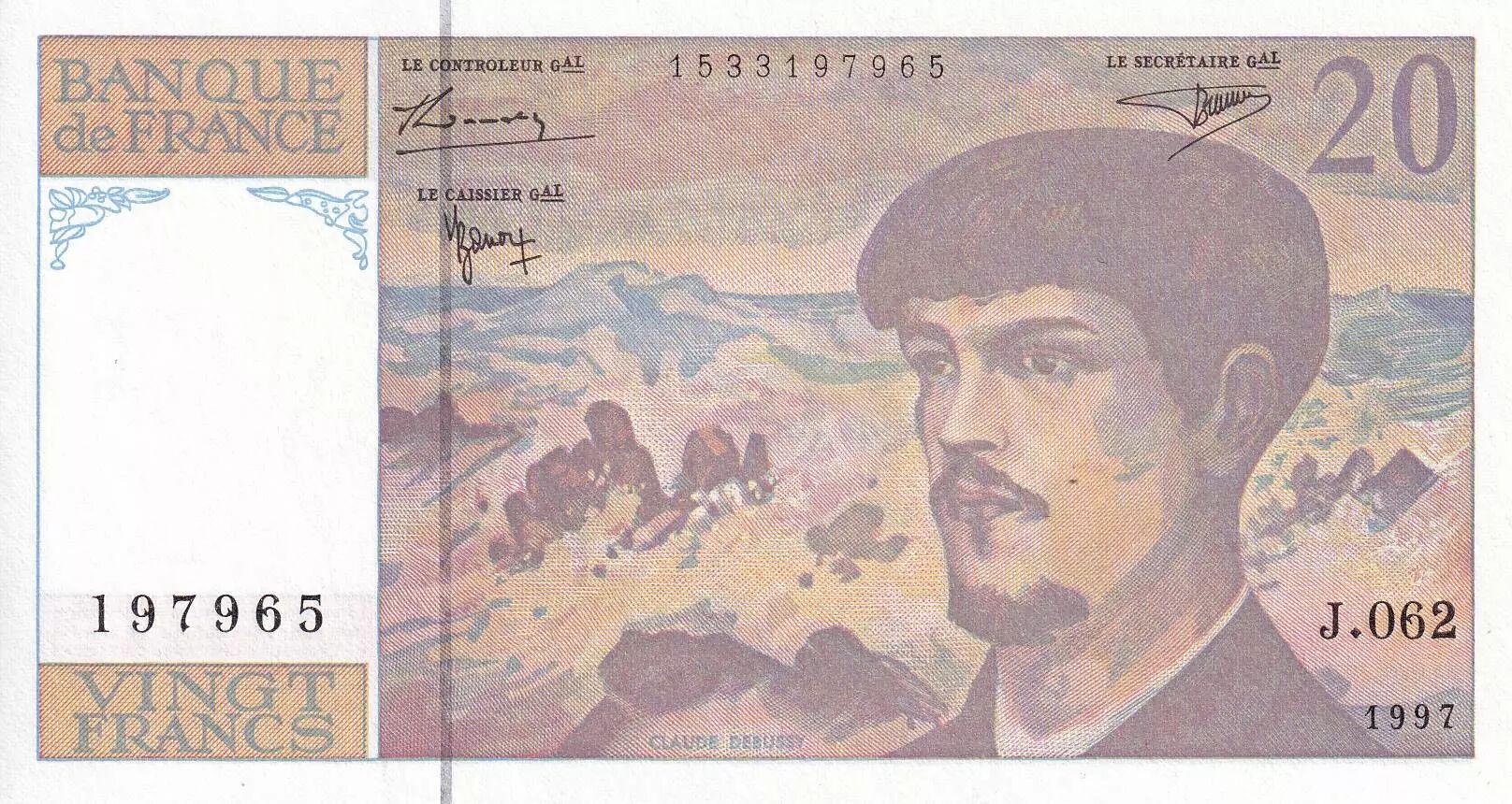 Accueil > Billets Français > Billets Banque de France > Billets 20 Francs > Debussy type 1980 (1980-1997) > France 20 Francs - Debussy - Série J.062 - 1997 - NEUF - F.66ter.02