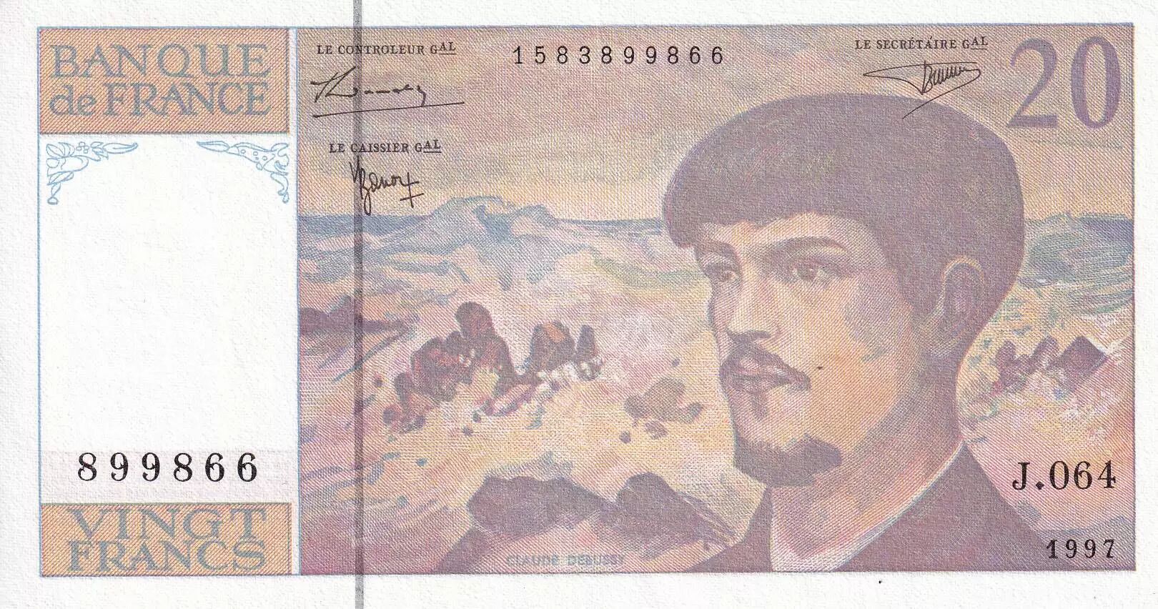 Accueil > Billets Français > Billets Banque de France > Billets 20 Francs > Debussy type 1980 (1980-1997) > France 20 Francs - Debussy - Série J.064 - 1997 - NEUF - F.66ter.02-64