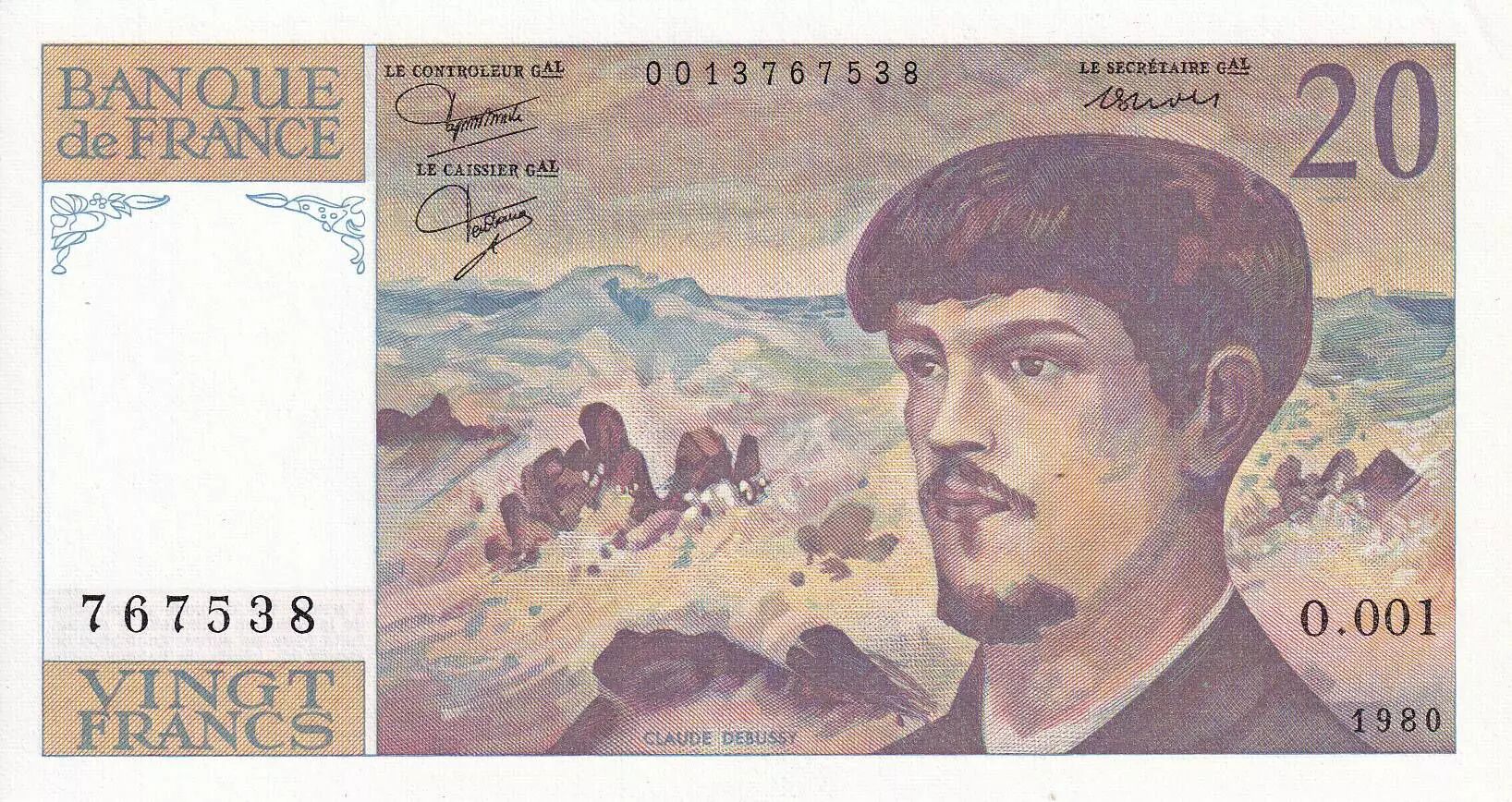 Accueil > Archivage > France 20 Francs - Debussy - Série O.001 - 1980 - NEUF - F.66.01