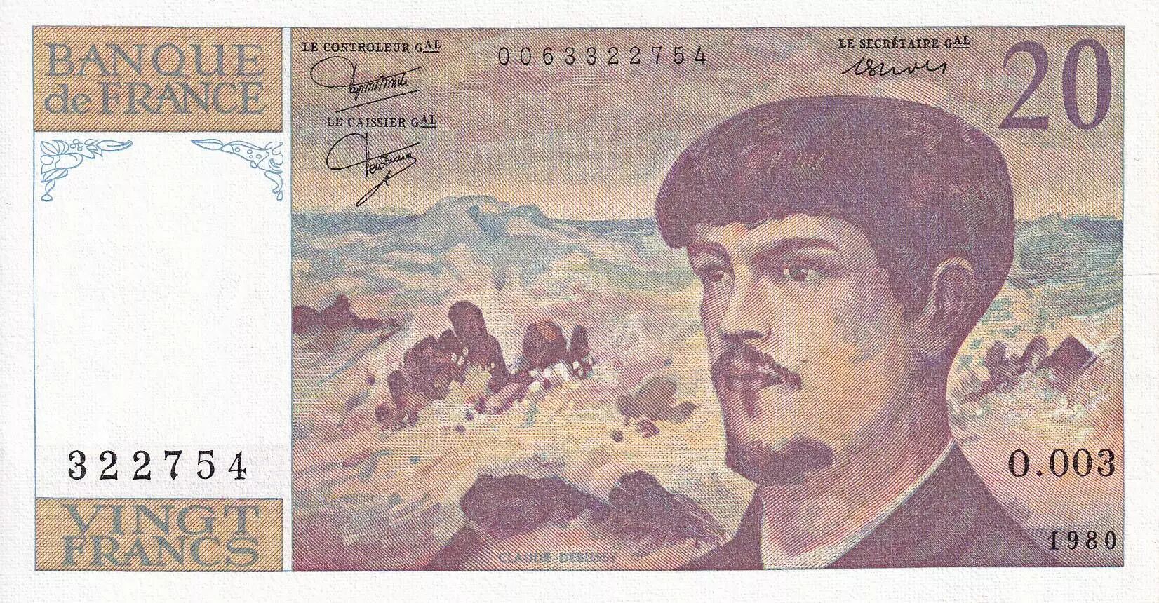 Accueil > Archivage > archivage-Billets Français > France 20 Francs - Debussy - Série O.003 - 1980 - SUP - F.66.01