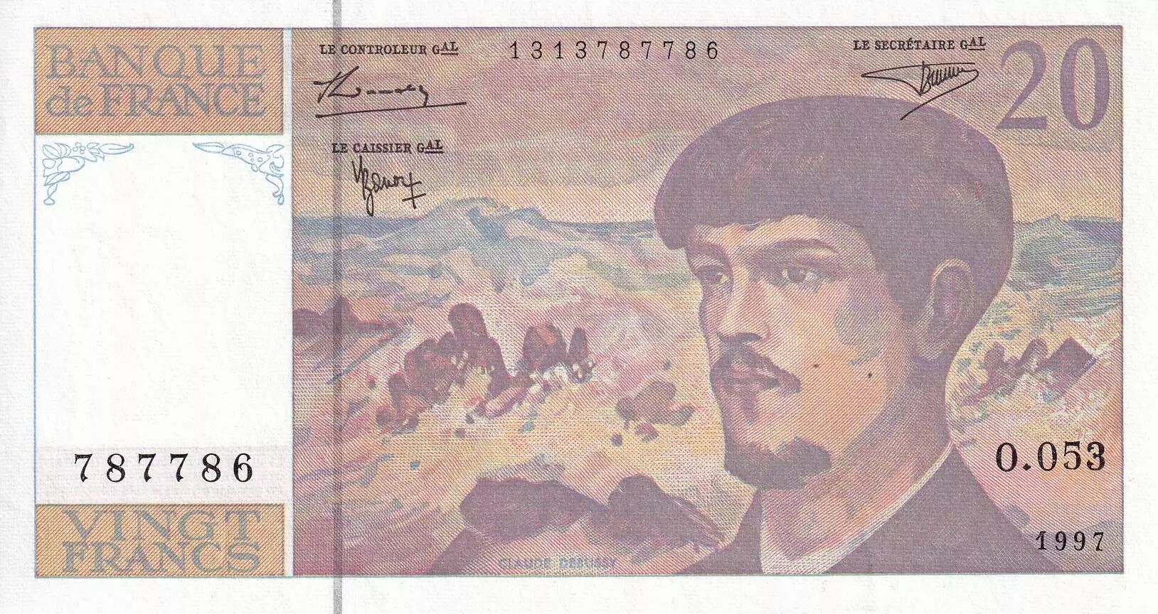 Accueil > Billets Français > Billets Banque de France > Billets 20 Francs > Debussy type 1980 (1980-1997) > France 20 Francs - Debussy - Série O.053 - 1997 - NEUF - F.66ter.02