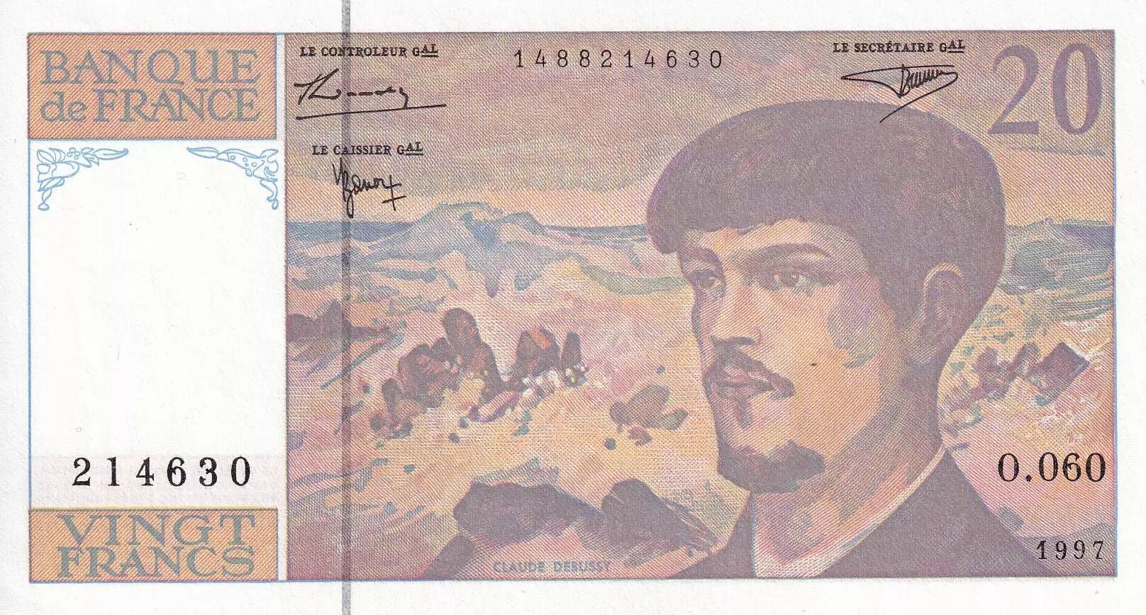 Accueil > Billets Français > Billets Banque de France > Billets 20 Francs > Debussy type 1980 (1980-1997) > France 20 Francs - Debussy - Série O.060 - 1997 - NEUF - F.66ter.02