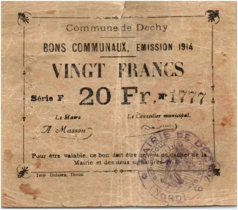 Banknote France 20 Francs Dechy City - 1914