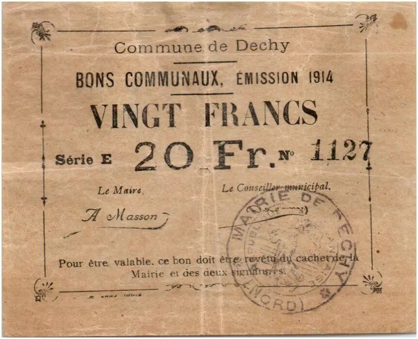 Billet France 20 Francs Dechy Commune - 1914