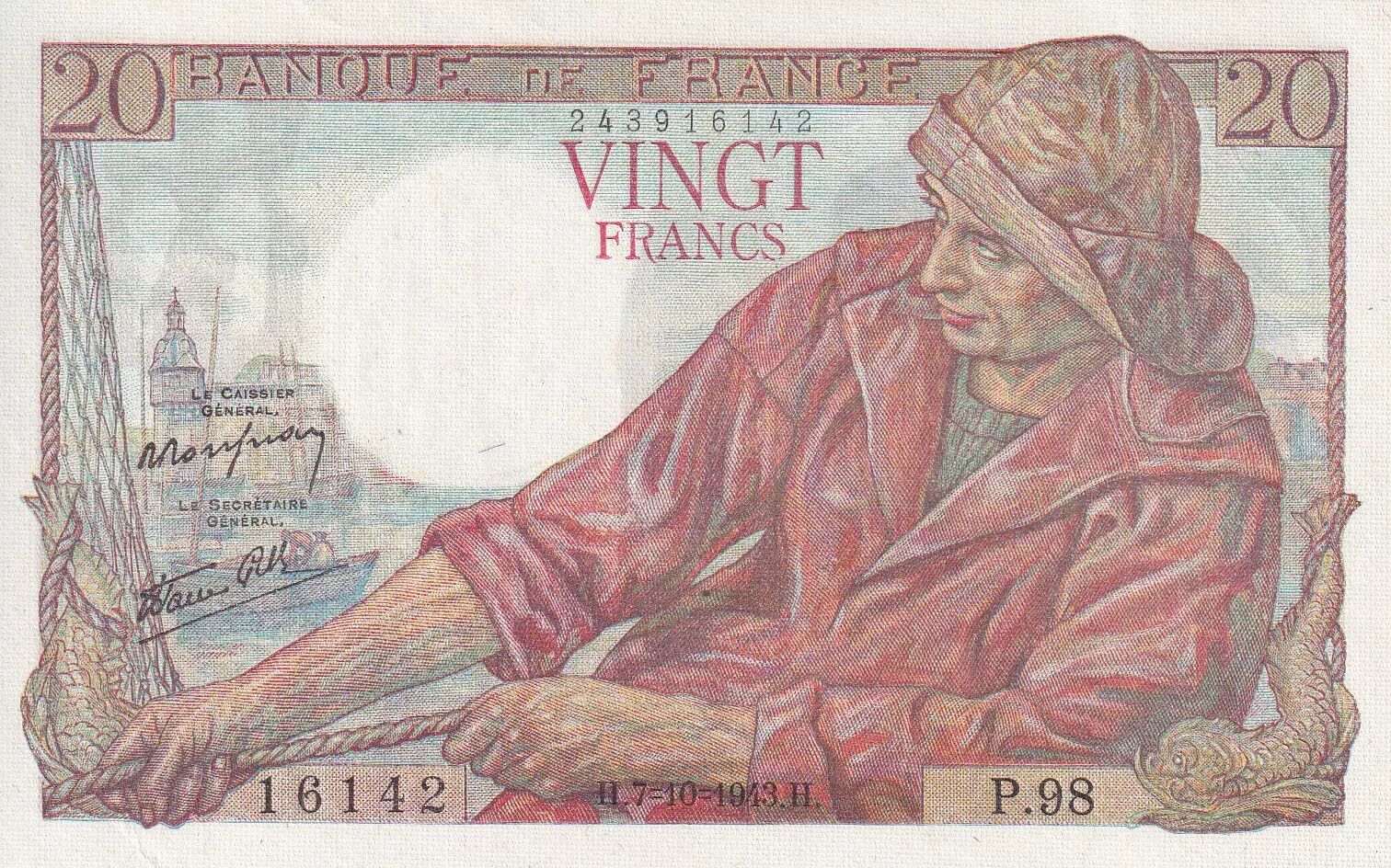 Home > > France 20 Francs - Fisher - 07-10-1943 - Serial P.98 - P.100
