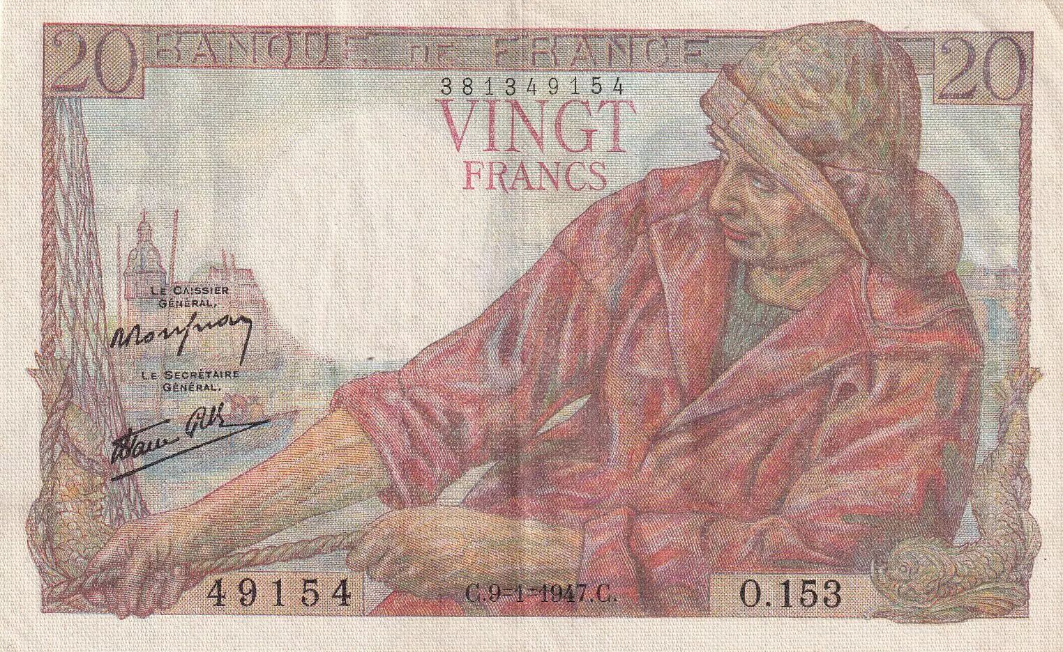 Home > > France 20 Francs - Fisher - 09-01-1947 - Serial O.153 - P.100