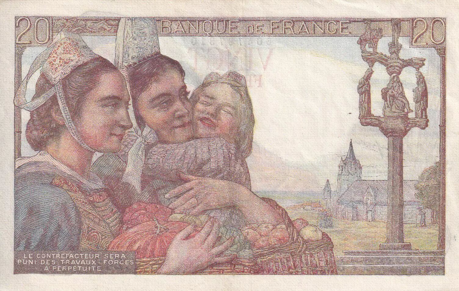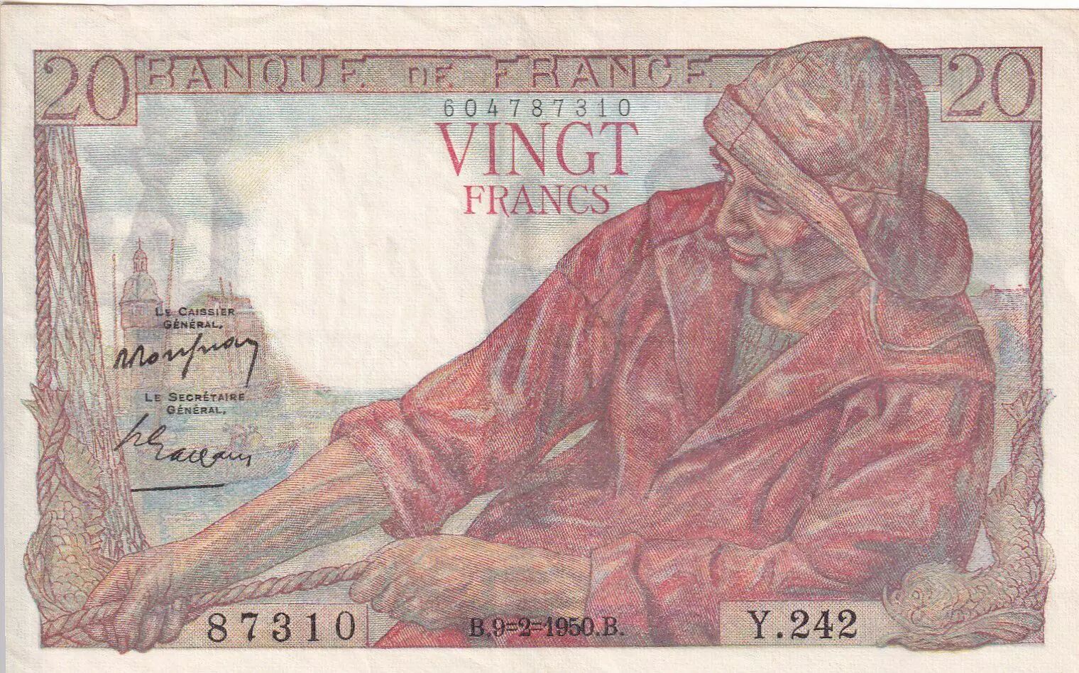 Banknote France 20 Francs - Fisher - 09-02-1950 - Serial Y.242 - P.100