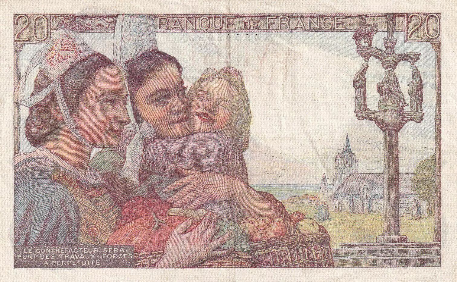 Home > > France 20 Francs - Fisher - 10-03-1949 - Serial A.199 - P.100