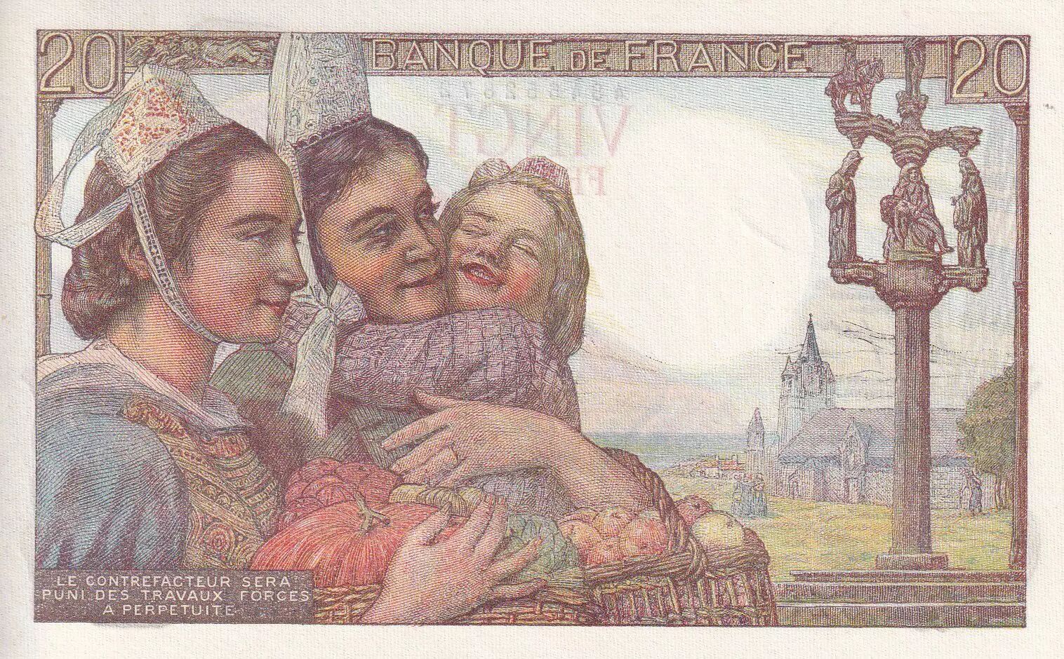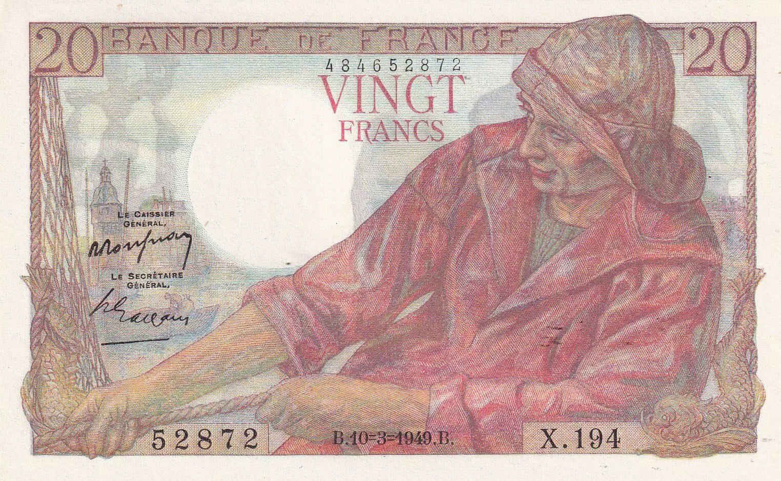 Home > > France 20 Francs - Fisher - 10-03-1949 - Serial X.194 - P.100