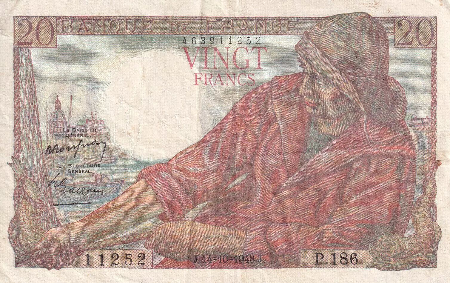 Home > > France 20 Francs - Fisher - 14-10-1948 - Serial P.186 - P.100