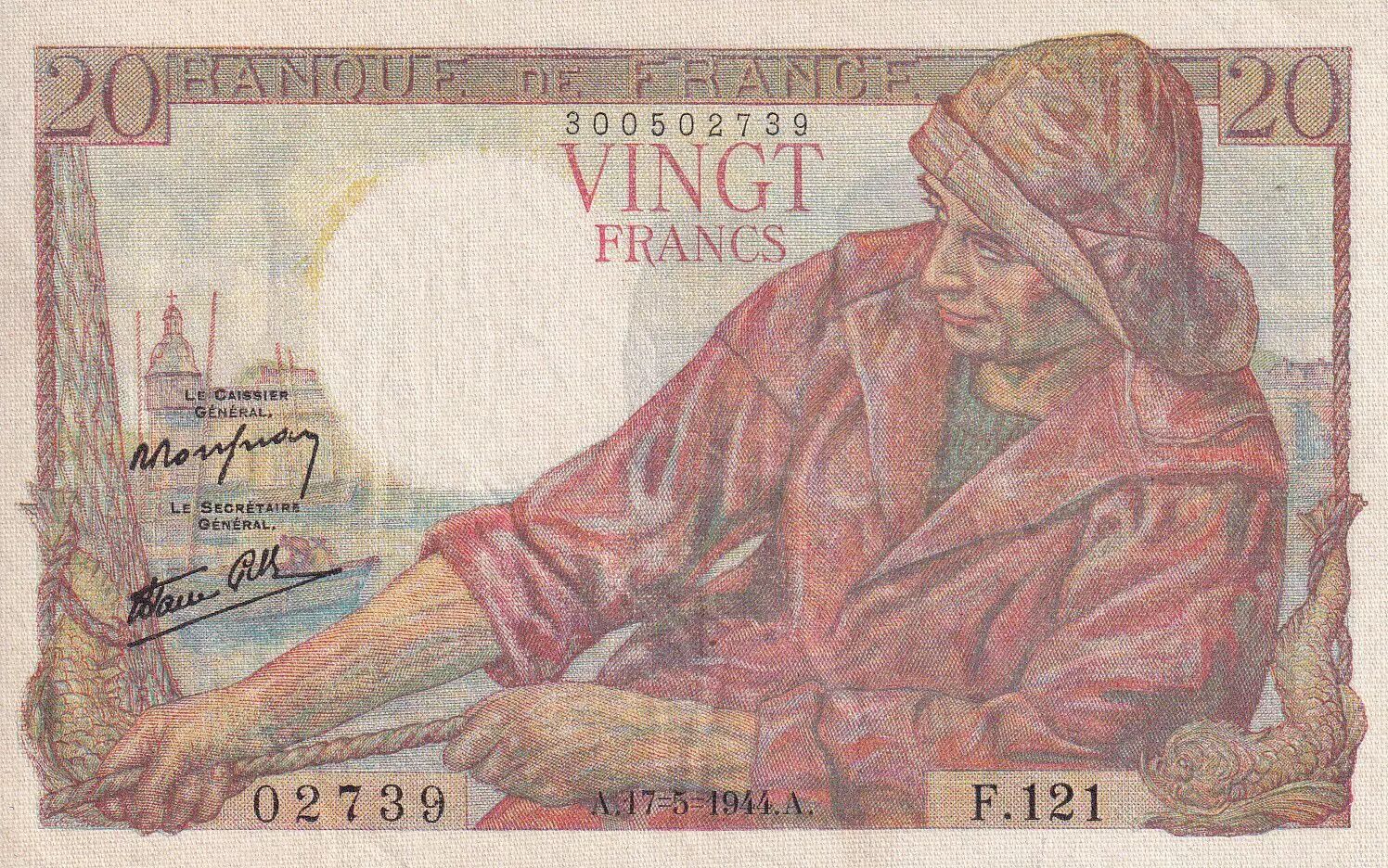 Home > > France 20 Francs - Fisher - 17-05-1944 - Serial F.121 - P.100